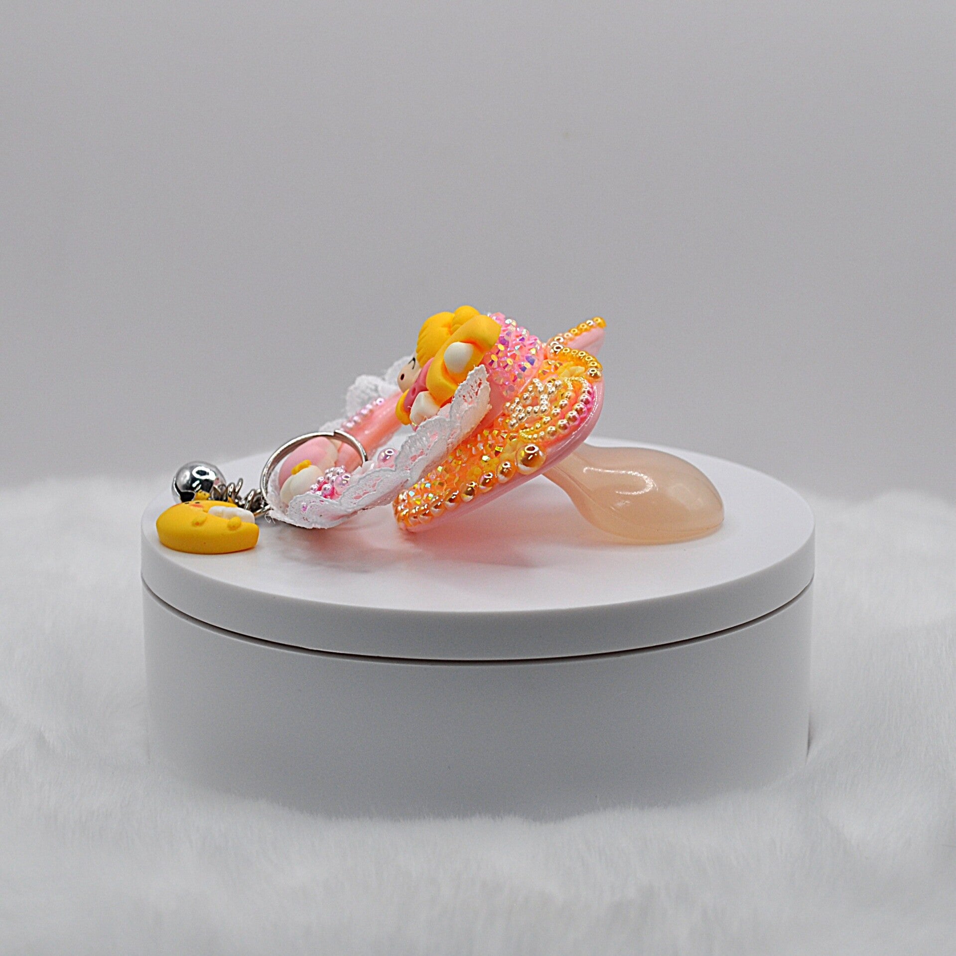 Each pacifier teat is kept in a bag during the decorating process, and my hands and all surfaces are thoughly washed before I touch anything. It is still suggested that you wash each pacifier thoroughly before use.