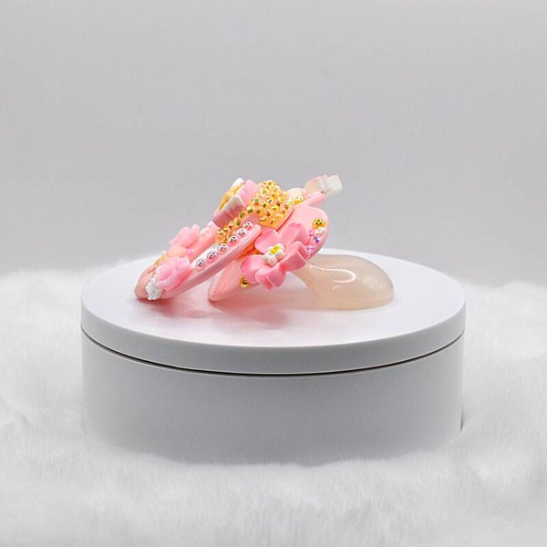 Each pacifier teat is kept in a bag during the decorating process, and my hands and all surfaces are thoughly washed before I touch anything. It is still suggested that you wash each pacifier thoroughly before use.