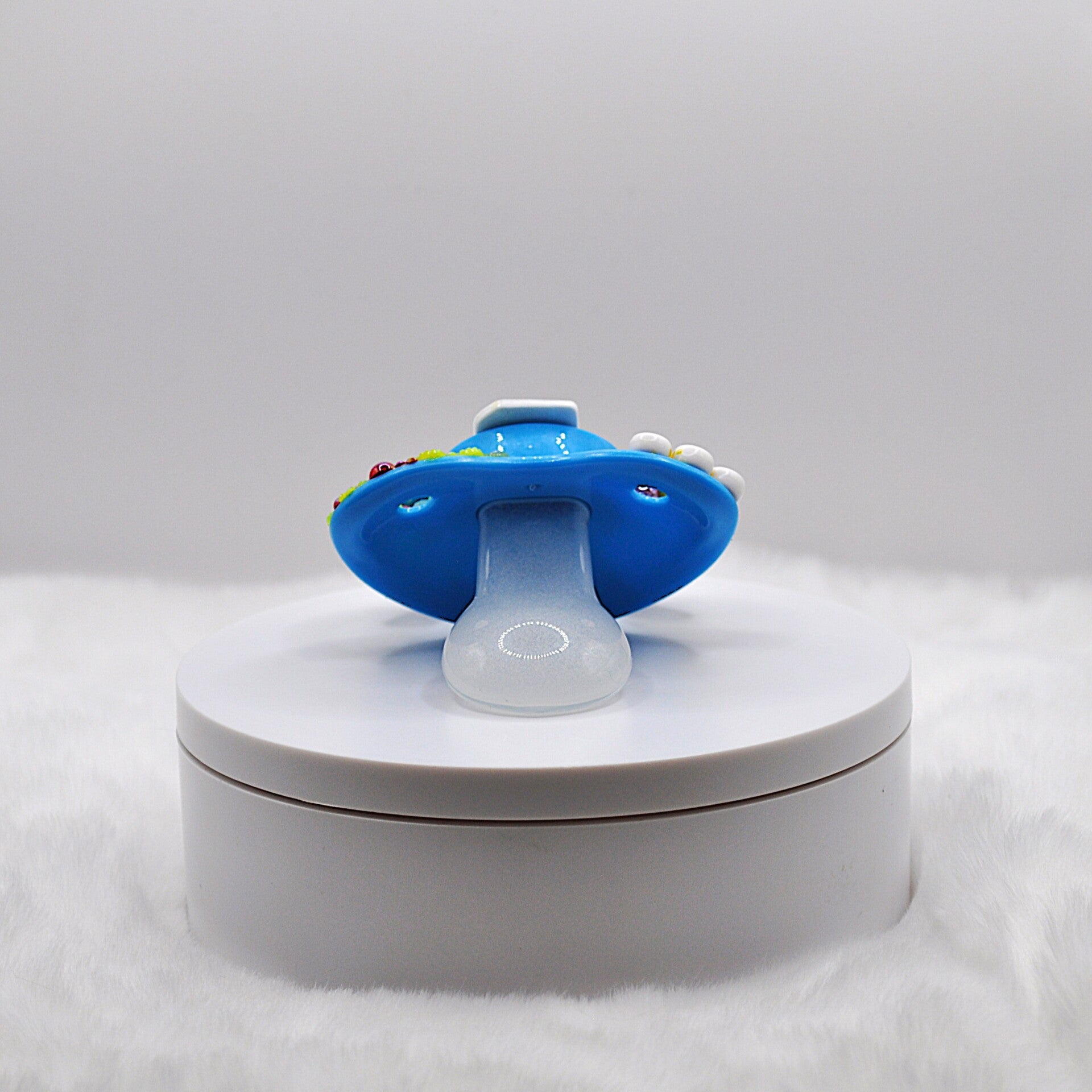 Each pacifier teat is kept in a bag during the decorating process, and my hands and all surfaces are thoughly washed before I touch anything. It is still suggested that you wash each pacifier thoroughly before use.