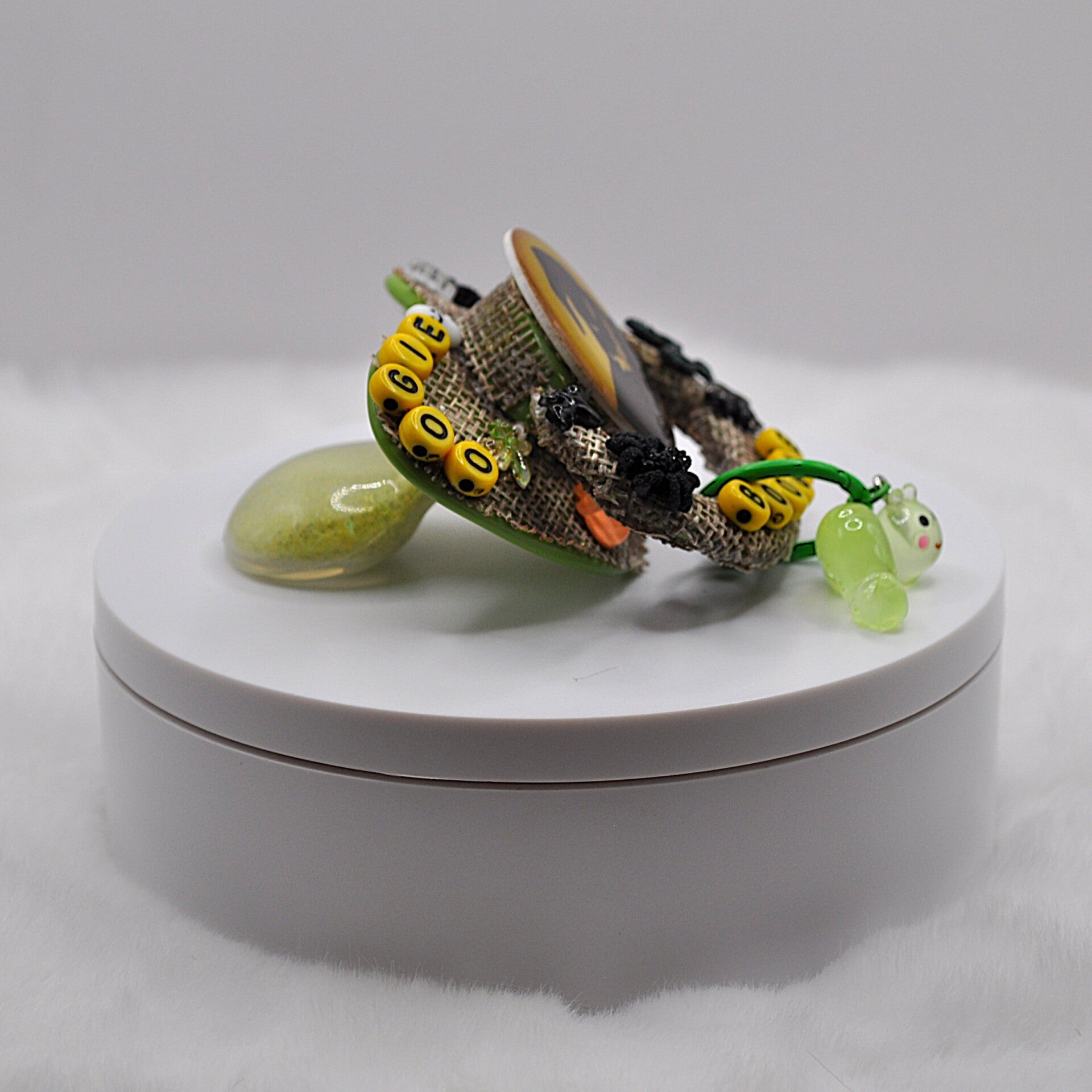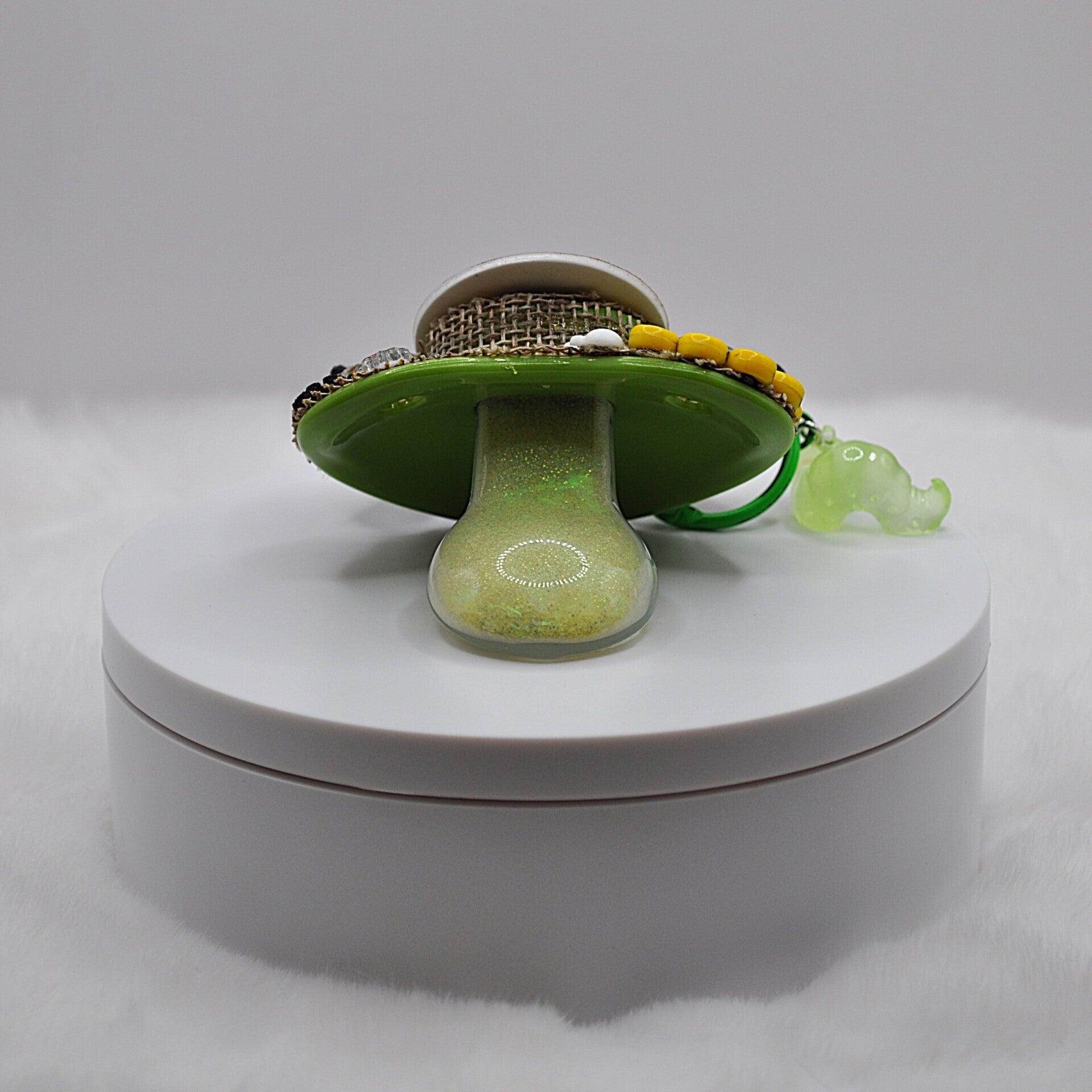 Each pacifier teat is kept in a bag during the decorating process, and my hands and all surfaces are thoughly washed before I touch anything. It is still suggested that you wash each pacifier thoroughly before use.