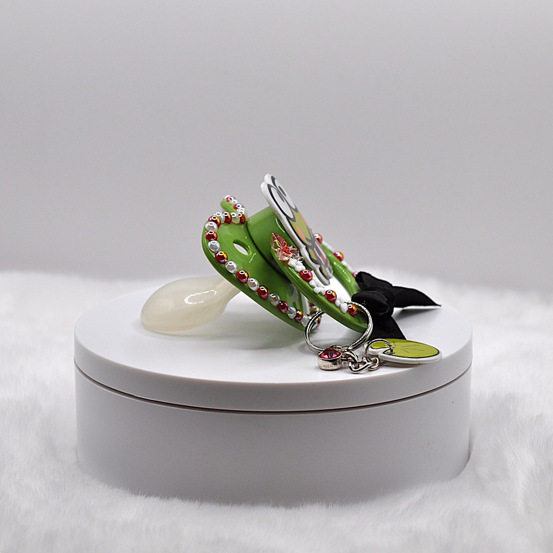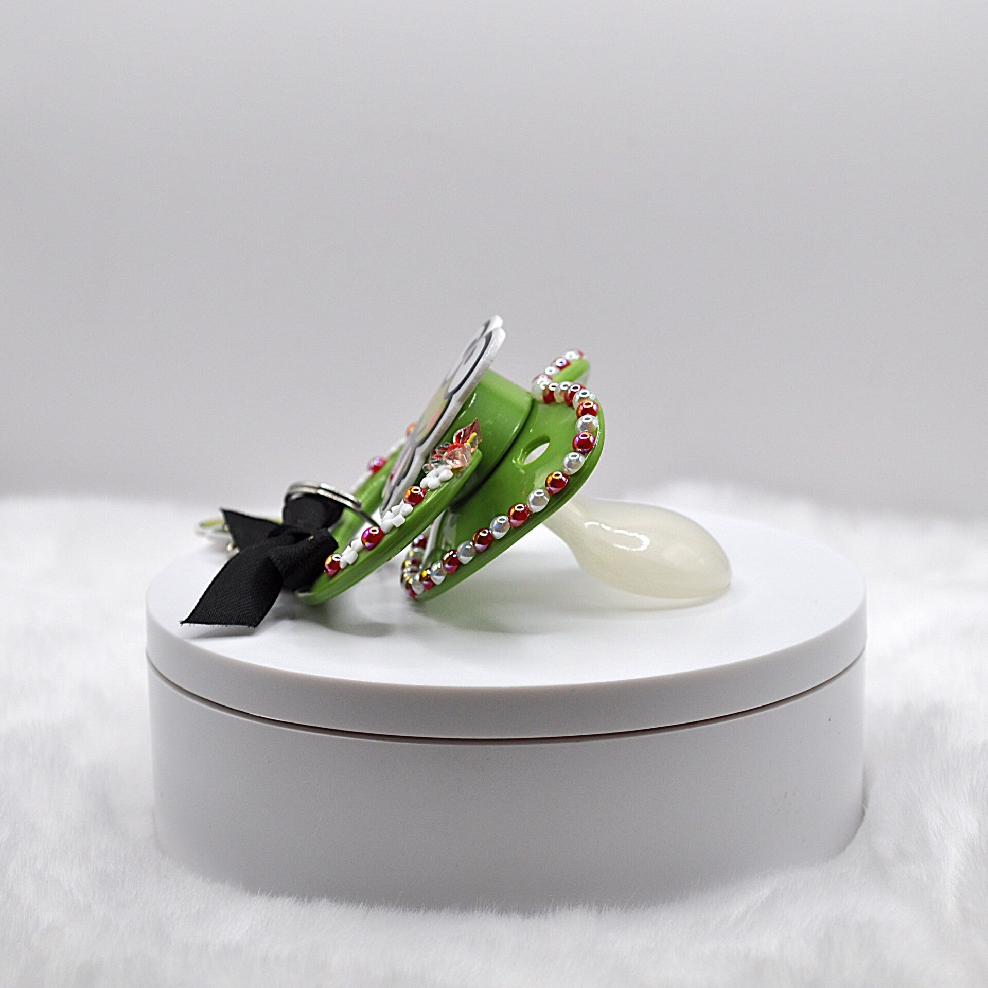 Each pacifier teat is kept in a bag during the decorating process, and my hands and all surfaces are thoughly washed before I touch anything. It is still suggested that you wash each pacifier thoroughly before use.